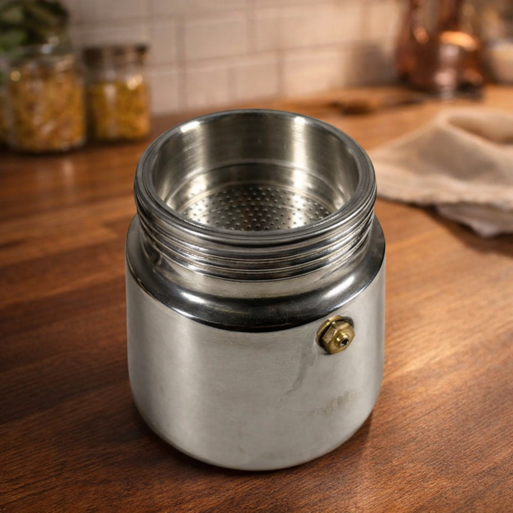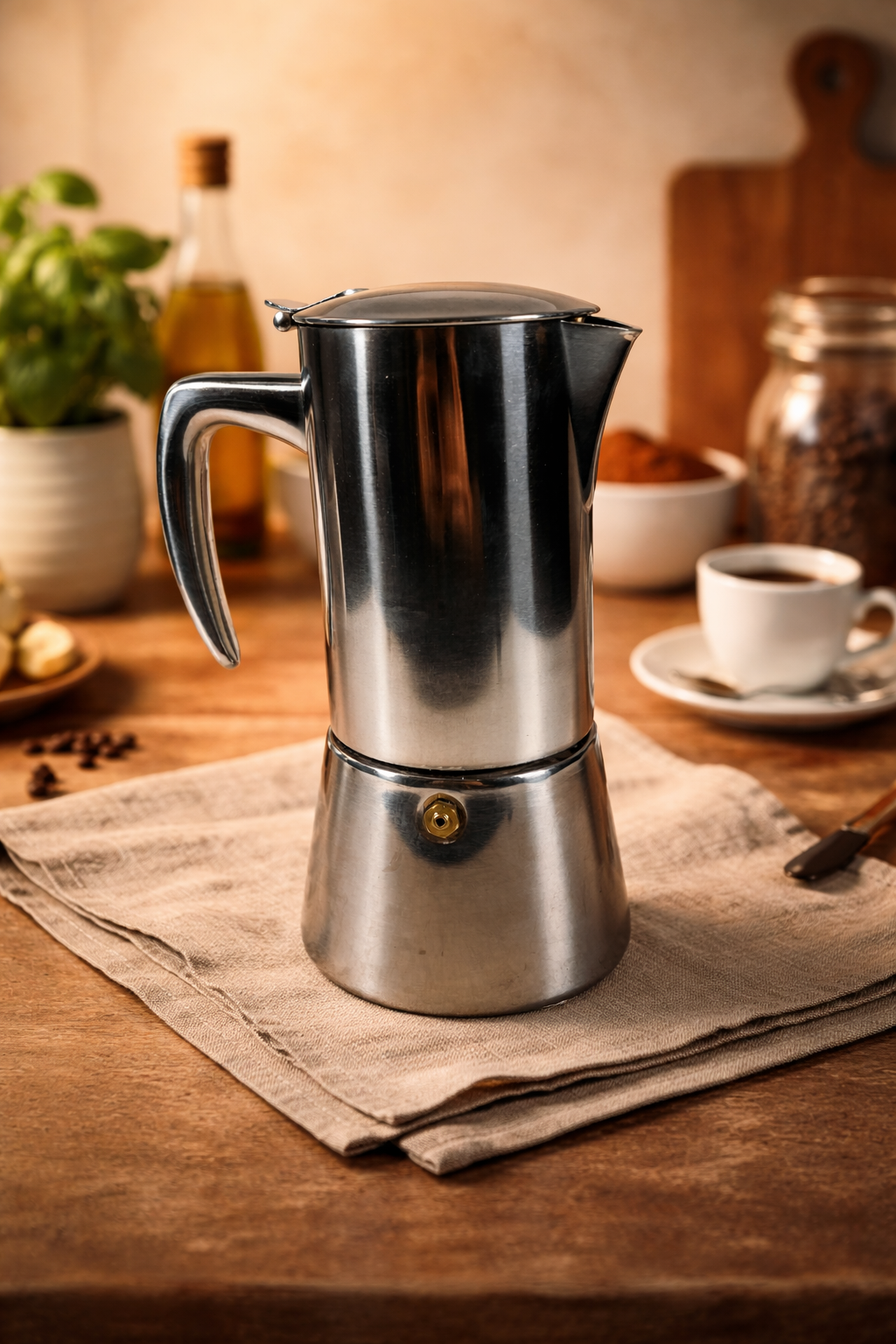 | Kopi Espresso dengan Cita Rasa Khas Italia Moka pot stainless steel ini dirancang untuk menghasilkan kopi espresso Italia dengan karakter rasa yang kuat, pekat, dan aroma yang kaya. Sistem penyeduhan moka pot memanfaatkan tekanan uap air yang naik melalui bubuk kopi, sehingga menghasilkan ekstraksi kopi yang maksimal dan konsisten. Dengan alat seduh kopi manual ini, Anda dapat menikmati espresso rumahan dengan cita rasa khas Italia tanpa perlu mesin espresso listrik. |