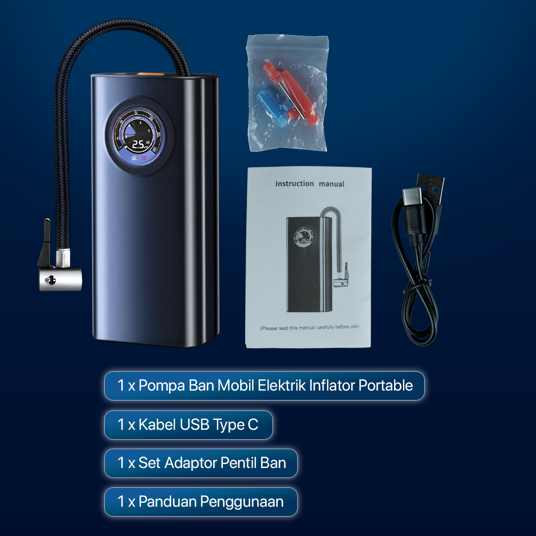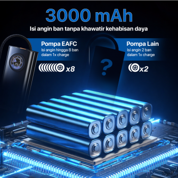 Sedang mencari alat untuk mengisi angin ban mobil yang cepat dan praktis? Pompa angin elektrik EAFC jawabannya! Mesin inflator kuat hasilkan angin bertekanan tinggi hingga 150 kPa. Baterai bekapasitas 3000 mAh dapat mengisi ulang angin ban tanpa khawatir kebahisan daya. Lengkap dengan aneka adapter kepala yang bisa digunakan untuk berbagai kebutuhan.