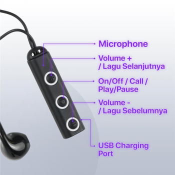 | Jawab Panggilan Mudah Tidak perlu melepas earphone ketika ingin menjawab panggilan telepon, Anda bisa melakukan percakapan melalui earphone karena dilengkapi dengan mikrofon. |