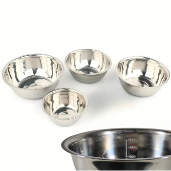 Mangkuk stainless steel 201 kokoh, anti karat, tersedia 4 ukuran fleksibel, serbaguna untuk adonan, masakan, hingga sajian. Satu wadah praktis untuk semua kebutuhan dapur!
