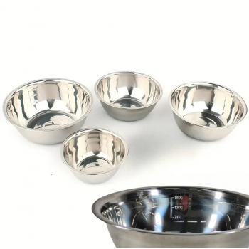 Mangkuk stainless steel 201 kokoh, anti karat, tersedia 4 ukuran fleksibel, serbaguna untuk adonan, masakan, hingga sajian. Satu wadah praktis untuk semua kebutuhan dapur!