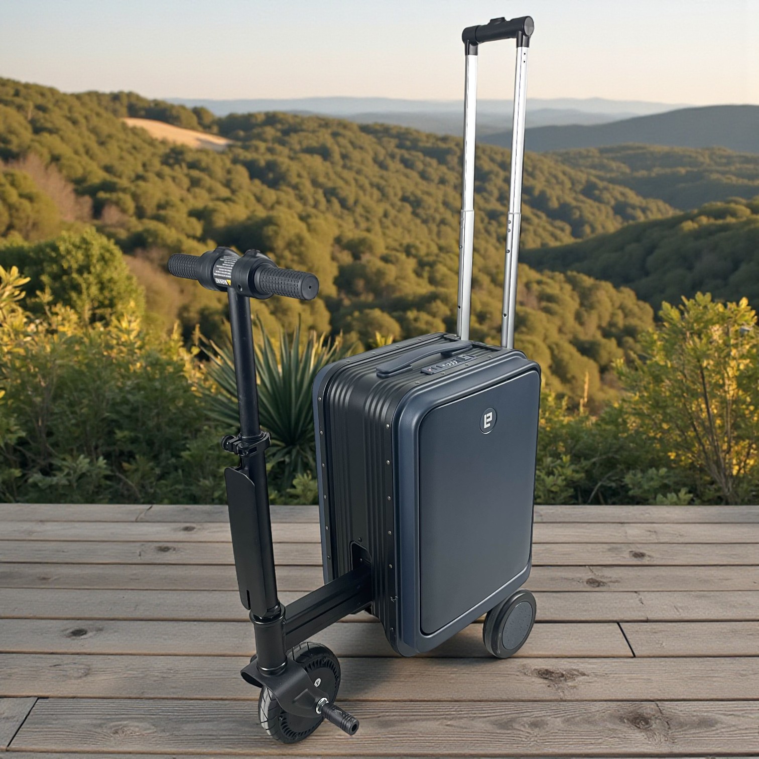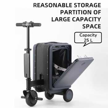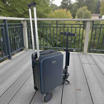 | Desain Ride-On Modern ala Smart Luggage Global Dari segi desain, koper ini mengadopsi konsep smart luggage ride-on yang banyak ditemukan pada koper skuter kelas atas seperti koper Airwheel. Posisi duduk ergonomis, setang nyaman digenggam, serta kontrol gas dan rem terintegrasi membuat pengguna mudah beradaptasi. Desain ini mendukung mobilitas cepat tanpa mengorbankan kenyamanan dan keamanan. |