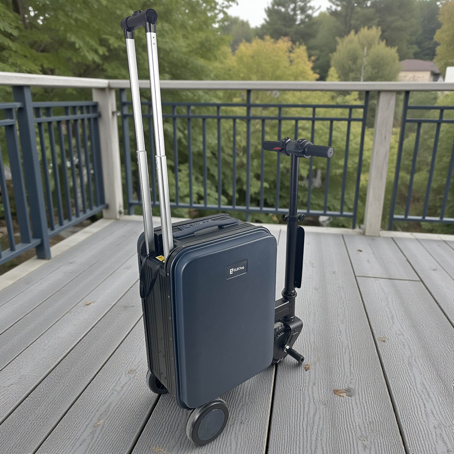 ELEClug menghadirkan koper untuk Anda para traveler modern. Selain ditarik, koper ini juga bisa Anda naiki layaknya skuter. Kecepatannya mencapai 13 km/jam dan dapat Anda atur arah geraknya. Tak melupakan fungsinya sebagai koper, Anda bisa menyimpan berbagai barang hingga 20 L di dalamnya. Keamanan barang pun tak perlu dikhawatirkan karena koper telah dibekali gembok TSA. Dilengkapi juga dengan port USB untuk mengisi daya berbagai gadget milik Anda.