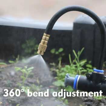 | Semprotan Kabut Halus Semprotan akan menghasilkan kabut mikro berkualitas tinggi yang mampu menyelimuti daun dan area sekitar tanaman secara merata. Dengan aliran air yang stabil dan konsumsi rendah, tanaman memperoleh kelembapan ideal tanpa risiko overwatering. Penyebaran air juga bisa Anda atur dengan memutar nozzle. |