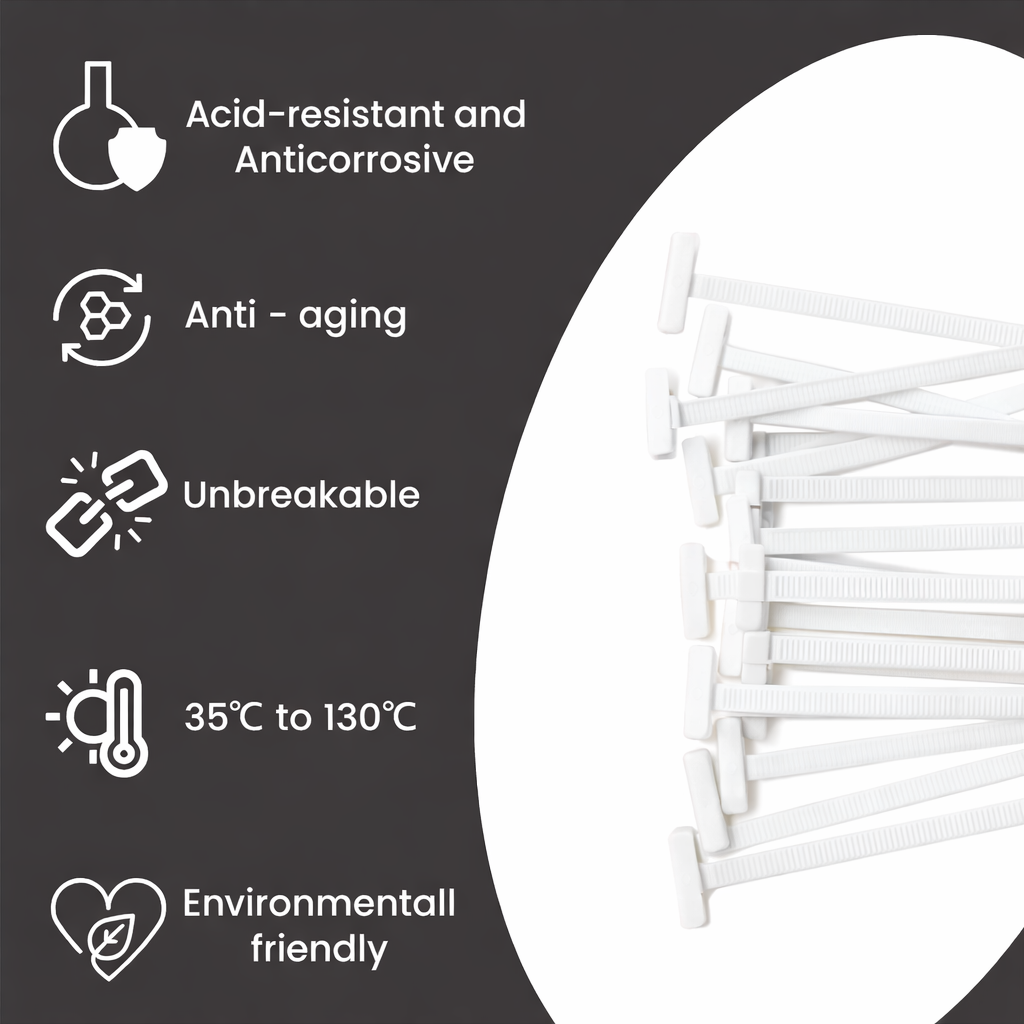 | Tahan Lama di Berbagai Kondisi Terbuat dari material nilon yang tahan terhadap aus, kelembapan,dan tahan suhu mulai dari 35 - 130°C. Desain yang kuat menjamin ikatan tetap aman dan tidak mudah putus meskipun dipakai di berbagai situasi lingkungan. |