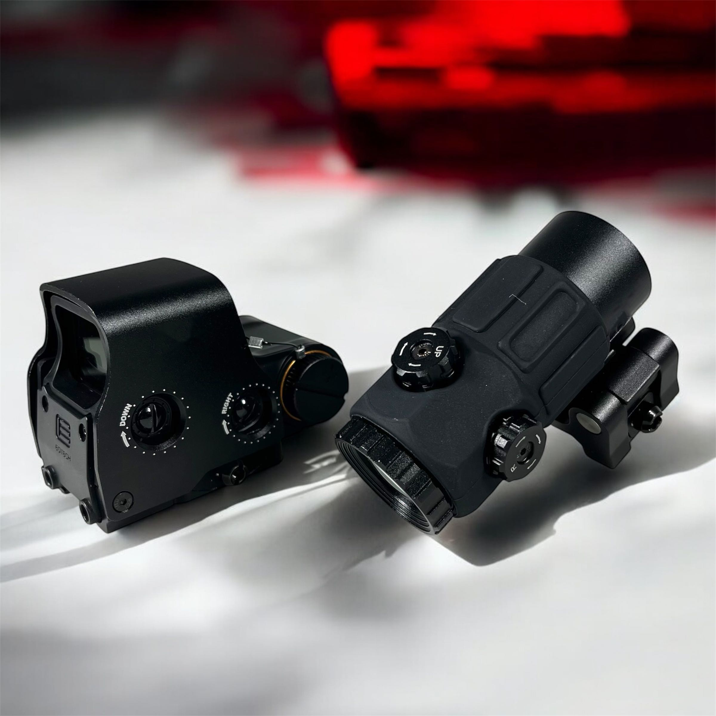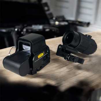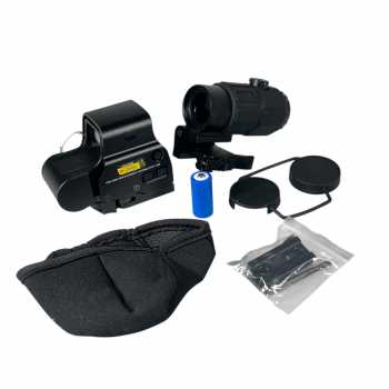 | Paket Lengkap dengan Magnifier G45 Tak perlu lagi bingung mencari magnifier yang kompatibel. Paket ini sudah menyediakan pilihan magnifier berkualitas yang langsung bisa dipasang dan digunakan. Dalam satu setup saja, Anda bisa menggabungkan kecepatan sight holografik dengan fleksibilitas zoom untuk jarak lebih jauh. |