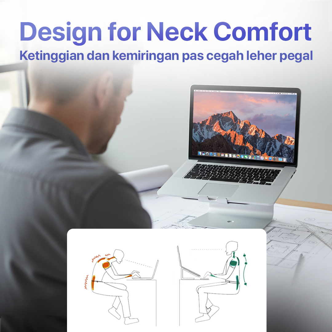 | Leher Bebas Pegal Menawarkan ketinggian dan kemiringan Anda dapat mengatur posisi laptop sesuai kebutuhan. Kini Anda bisa bekerja dengan nyaman tanpa khawatir leher pegal atau kaku meski dalam waktu yang panjang. |