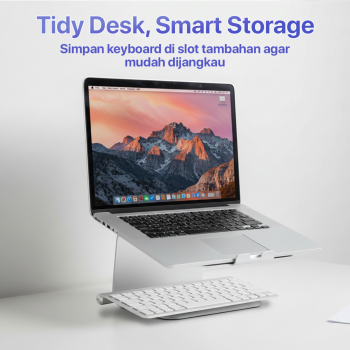 | Slot Keyboard Praktis Bagian bawah stand laptop dilengkapi slot tambahan untuk meletakkan keyboard. Kini Anda bisa menjangkau dan menggunakan keyboard dengan mudah kapan saja. |