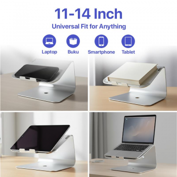 | Ukuran Universal untuk Semua Menawarkan ukuran universal, gunakan stand laptop untuk meletakkan berbagai barang. Mulai dari smartphone, tablet, buku, hingga laptop 14 inch, semua bisa Anda letakkan di atas stand ini. |