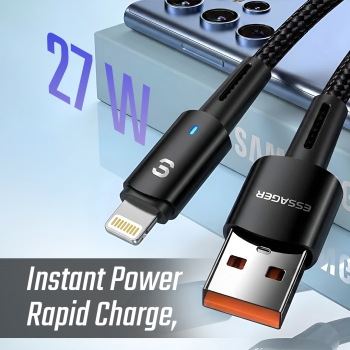 ESSAGER kabel data lightning ES-X16 adalah solusi charging dan transfer data premium untuk pengguna perangkat Apple. Dengan dukungan fast charging 27 W dan arus 2.4 A, kabel ini mampu mengisi daya iPhone, iPad, dan AirPods dengan cepat dan efisien. Dilengkapi lampu LED indicator, material nylon braided anti putus, dan chip pintar untuk keamanan perangkat, ESSAGER kabel data ES-X16 cocok untuk kebutuhan harian, traveling, kerja, atau gaming. Praktis, tahan lama, dan siap menemani aktivitas digital Anda.