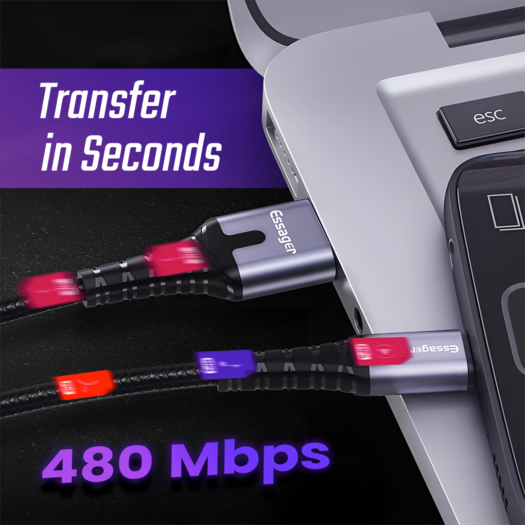 Kabel data ESSAGER hadir dengan daya isi ulang hingga 2 A yang mampu mempercepat pengisian baterai. Kecepatan transfer 480 Mbps juga memastikan file berpindah dalam waktu singkat. Desain unik dengan indikator LED yang akan menyala saat digunakan. Kombinasi lapsian PP braided dan sluminium alloy berkualitas, kabel data charger ini menawarkan ketahanan yang jauh lebih baik dibanding kabel plastik bawaan. Cocok bagi yang mencari kabel tangguh dengan kualitas premium.