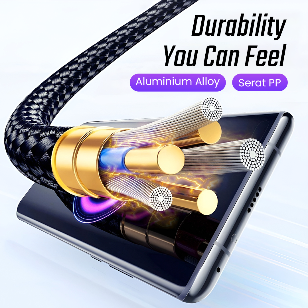| Braided Kuat dan Tahan Lama Kombinaisn lapisan anyaman serat PP da konketor eluminium alloy lebih kuat dan tahan terhadap penggunaan jangka panjang. Material ini membantu melindungi kabel dari kerusakan akibat tarikan, lipatan, maupun gesekan saat digunakan setiap hari. Dengan kualitas material yang lebih kokoh, kabel data ini tidak mudah kusut sehingga lebih nyaman digunakan. |
