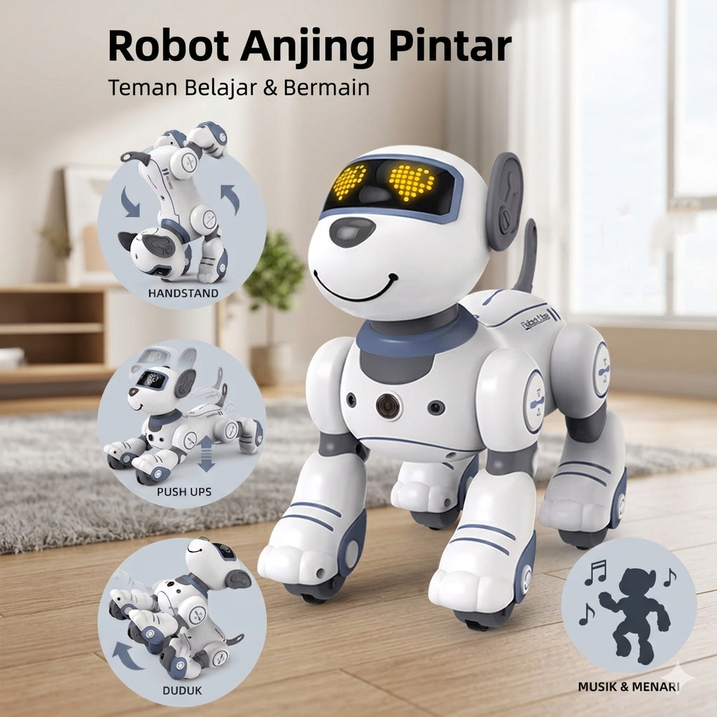 Jika anak Anda menginginkan peliharaan anjing kecil namun Anda takut tak bisa merawatnya, robot anjing pintar dari ETOKI merupakan sebuah solusi tepat yang bisa Anda gunakan. Robot mainan ini mampu bertingkah seperti anjing mulai dari berjalan, duduk, tiarap, handstand hingga mengikuti Anda. Robot anjing pintar juga memiliki lagu yang bisa diputar untuk menghibur anak Anda. Tak hanya sampai situ, robot anjing pintar ini juga bisa menyapa Anda. Dilengkapi juga dengan sensor sentuh sehingga ketika Anda menyentuh bagian tertentu robot ini akan bergerak merespons sentuhan.
