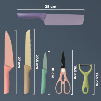 Sedang mencari set peralatan dapur untuk rumah Anda? Set pisau dapur ini hadir dengan pisau dapur, pisau daging, pisau kupas, pisau roti, pengupas buah, hingga gunting dapur. Dirancang untuk berbagai kebutuhan dapur, set pisau ini teruat dari 3CR13 stainess steel yang tajam, tahan lama, dan tidak mudah berkarat.