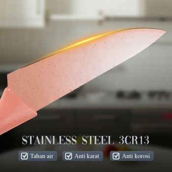 | Handle Ergonomis Handle ergonomis dengan desain elegan membuat set pisau ini nyaman digunakan sekaligus menambah estetika dapur. Memberikan fleksibilitas dan presisi untuk berbagai kebutuhan, dari potongan halus hingga tebal. |