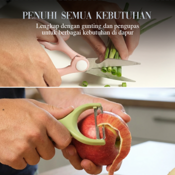 | Set Pisau Lengkap Menawarkan 4 jenis pisau dengan fungsi berbeda, gunakan set pisau untuk mengupas, memotong, hingga mencincang untuk aneka bahan makanan. Lengkap dengan pengupas buah dan gunting dapur yang buat aktivitas memasak lebih praktis. |