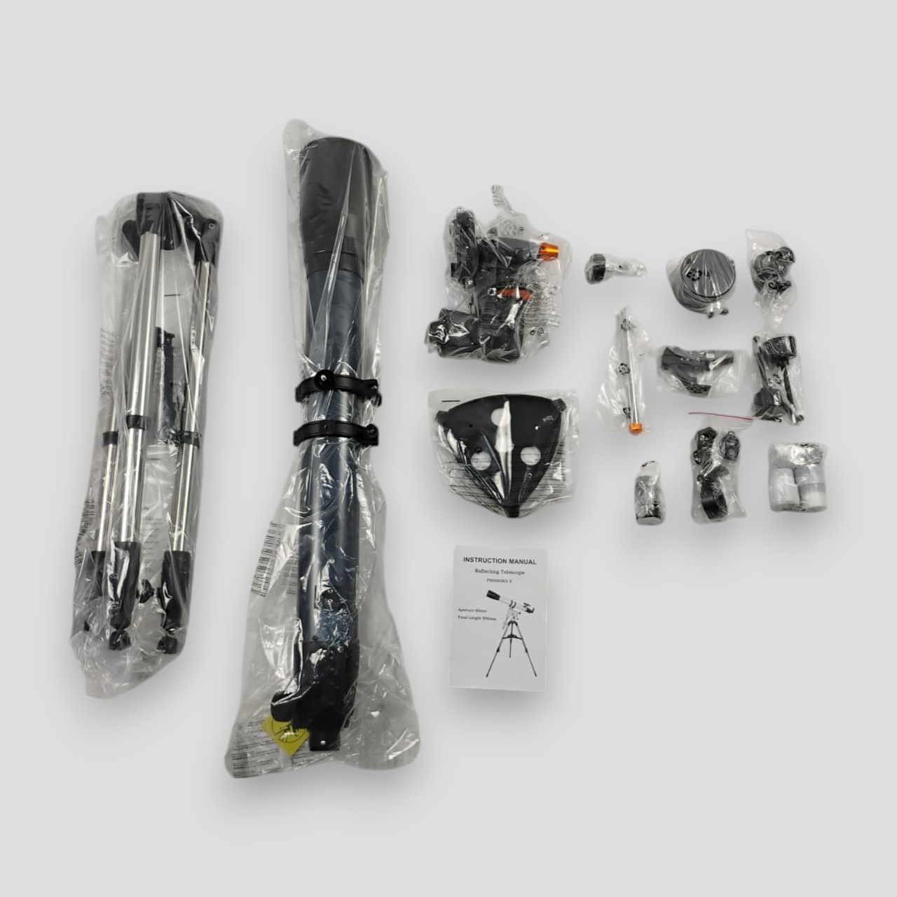 | Desain Portabel dengan Aksesori Lengkap Berat sekitar 13 kg, masih cukup portabel untuk dibawa ke lokasi pengamatan. Paket sudah termasuk tripod kokoh, lensa tambahan, dan aksesoris pendukung sehingga pengguna bisa langsung mulai observasi tanpa perlu membeli perlengkapan tambahan. |