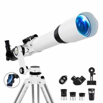 | Lensa Objektif 80mm dengan Daya Tangkap Cahaya Tinggi Teleskop ini dibekali lensa objektif berdiameter 80 mm yang mampu menangkap cahaya lebih banyak dari objek langit. Diameter besar ini membuat tampilan planet, bintang, dan bulan terlihat lebih terang, lebih detail, dan lebih jelas meskipun digunakan di area dengan pencahayaan terbatas. |