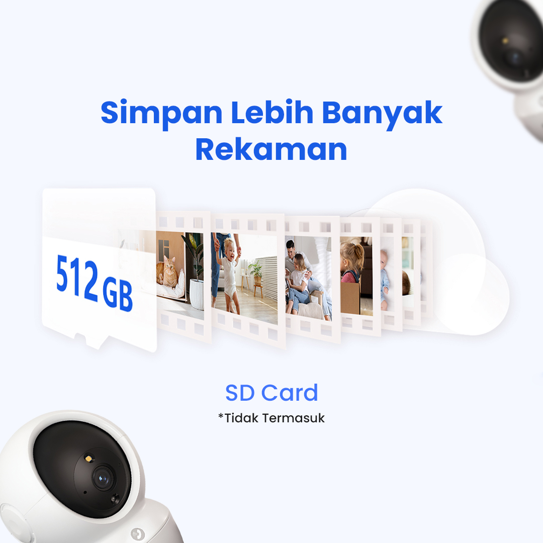 | Simpan Lebih Banyak Rekaman Slot pada TF Card dapat digunakan untuk kartu memori Micro SD dengan kapasitas hingga 512 GB. Simpan lebih banyak video untuk memantau kondisi lingkungan jangka panjang, |