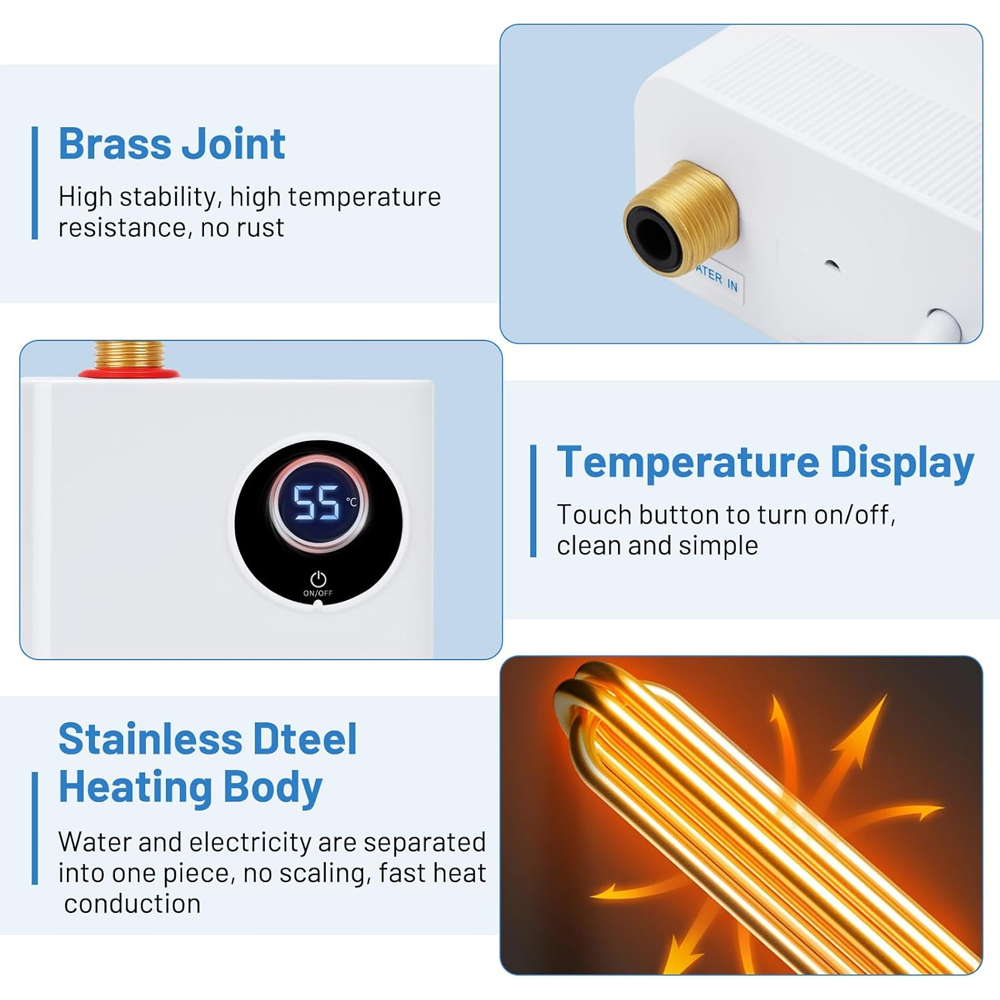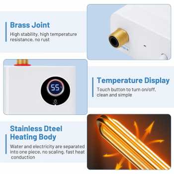 Dilengkapi elemen pemanas stainless steel 304 dengan konduktivitas panas tinggi serta daya 3800 W, air dingin dapat dipanaskan menjadi air panas dalam durasi 3 detik saja. Teknologi pemanasan instan ini memungkinkan Anda menikmati air panas tanpa menunggu lama.