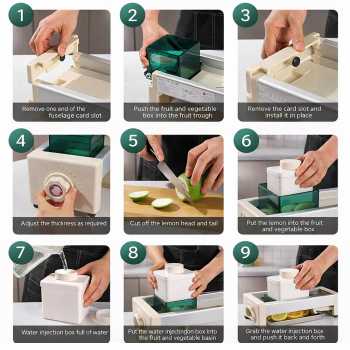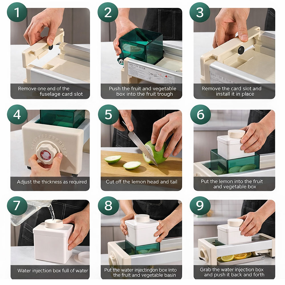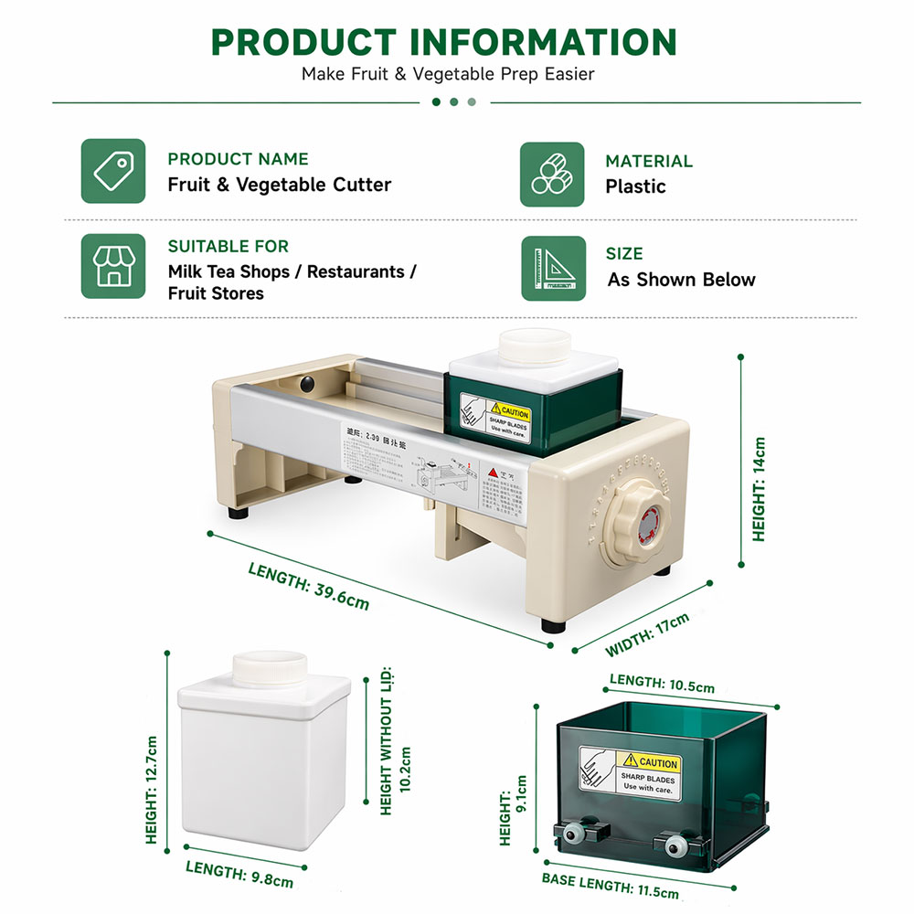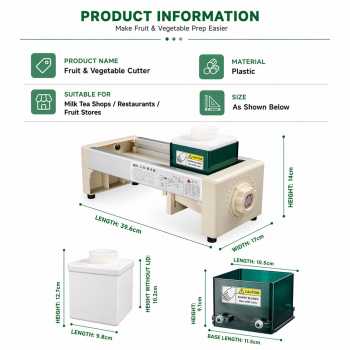 Alat pemotong buah manual V-shape, Anda bisa mendapatkan irisan yang presisi, cepat, dan seragam tanpa ribet. Dirancang untuk kebutuhan komersial toko minuman, restoran, dan toko buah kering, alat ini juga nyaman digunakan di dapur rumahan sehari-hari. Dengan sistem 15 tingkat ketebalan dan mekanisme laci beroda, setiap irisan dihasilkan dengan presisi tinggi dan permukaan yang rapi.
