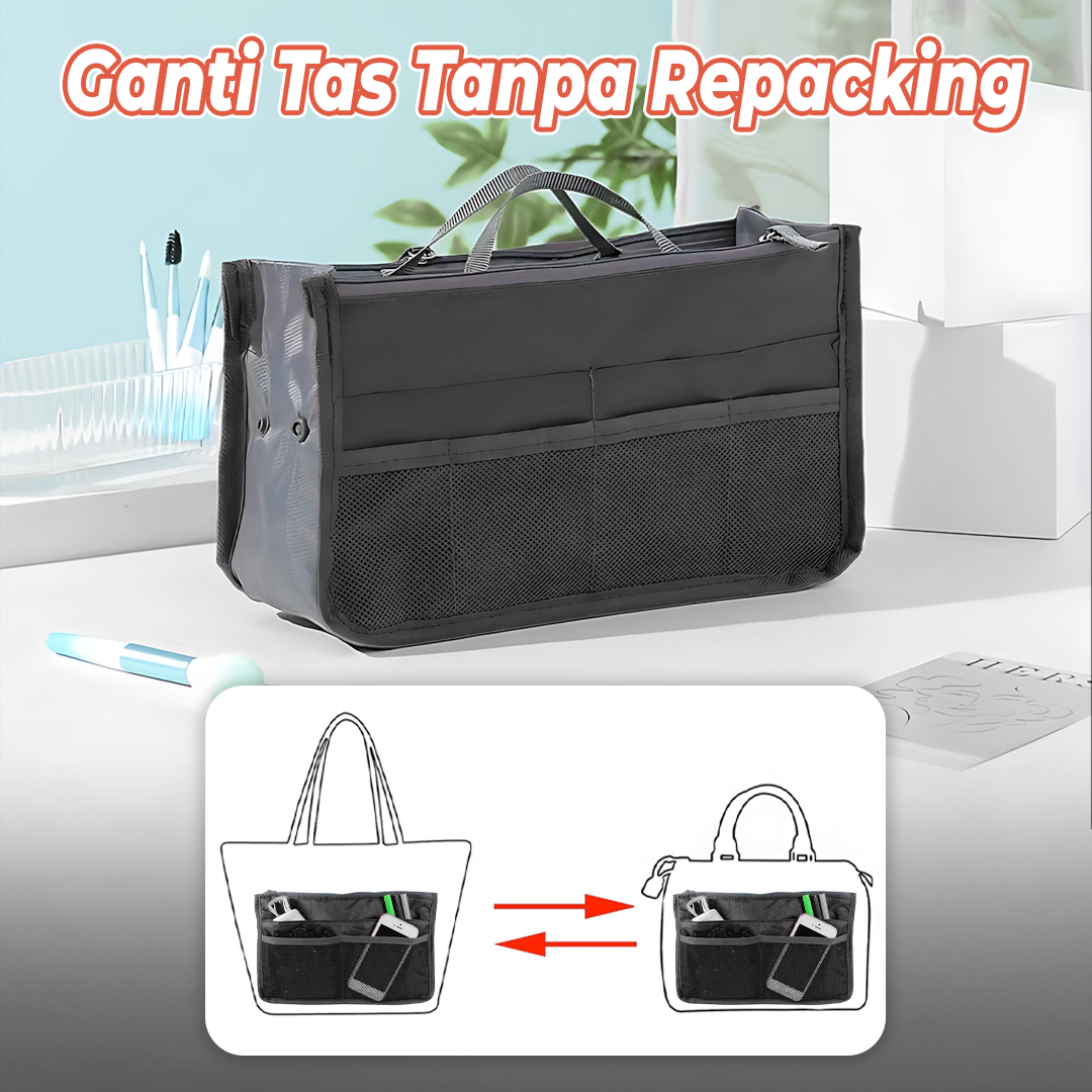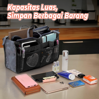 | Simpan Lebih Banyak Barang Ukuran yang besar lengkap dengan banyak kantong memungkinkan Anda membawa banyak barang sekaligus. Pas untuk simpan dan bawa make up, dompet, buku catatan, dan banyak lainnya. |