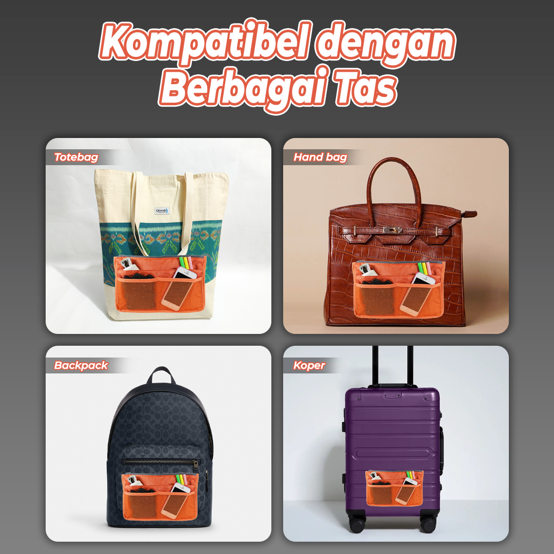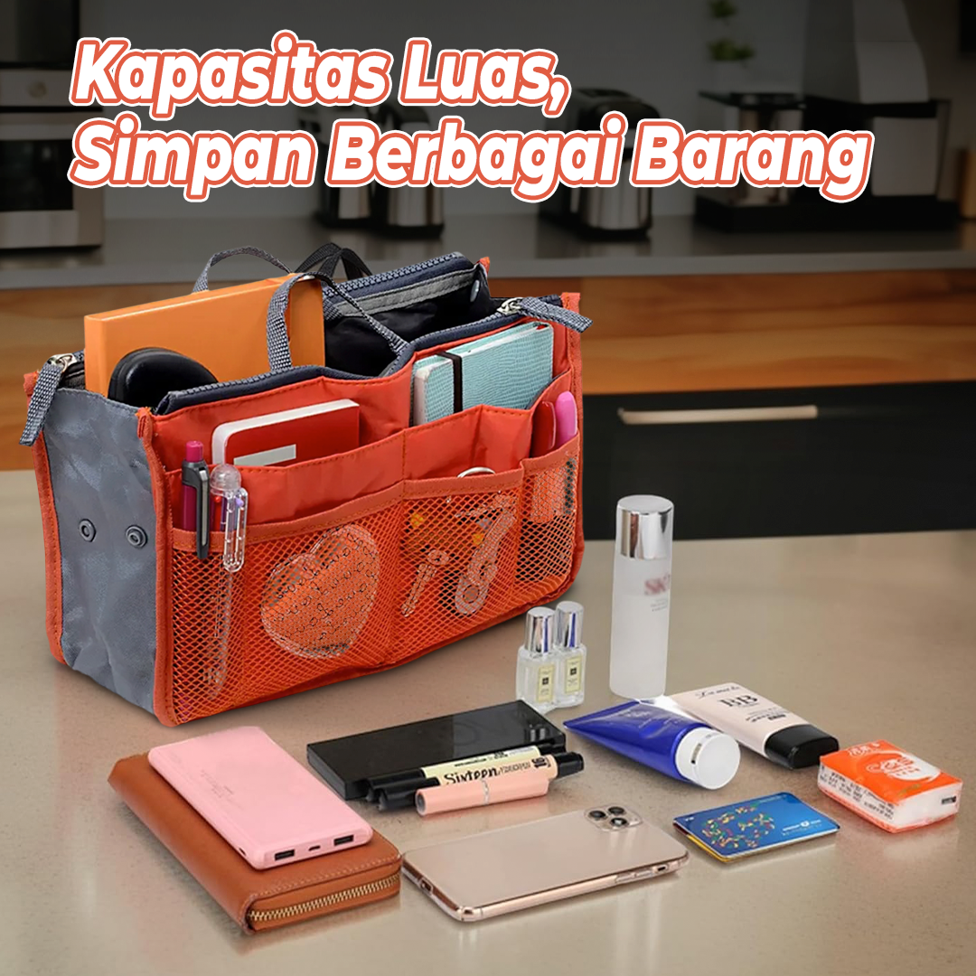 | Simpan Lebih Banyak Barang Ukuran yang besar lengkap dengan banyak kantong memungkinkan Anda membawa banyak barang sekaligus. Pas untuk simpan dan bawa make up, dompet, buku catatan, dan banyak lainnya. |