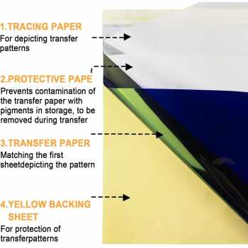 | Cetakan Presisi untuk Persiapan Tato Maksimal Setiap lembar kertas ini dirancang untuk menghasilkan cetakan yang tajam, kontras, dan mudah dibaca saat diaplikasikan ke kulit. Ini sangat membantu dalam proses persiapan sebelum tato, memungkinkan seniman mengikuti pola dengan lebih akurat, serta memberikan pengalaman yang lebih profesional bagi pelanggan. |