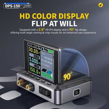 | Layar IPS 2.8 Inch Informatif Dilengkapi layar IPS 2.8 Inch 4-digit dengan sudut flip hingga 90°, power supply ini menampilkan data tegangan dan arus secara jelas dalam bentuk angka maupun grafik kurva. Tampilan yang tajam dan responsif memudahkan pemantauan real-time, bahkan dalam lingkungan kerja dengan pencahayaan minim. |