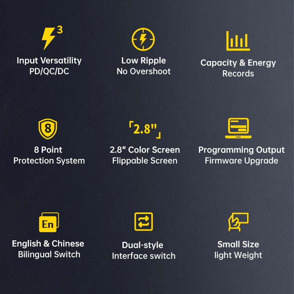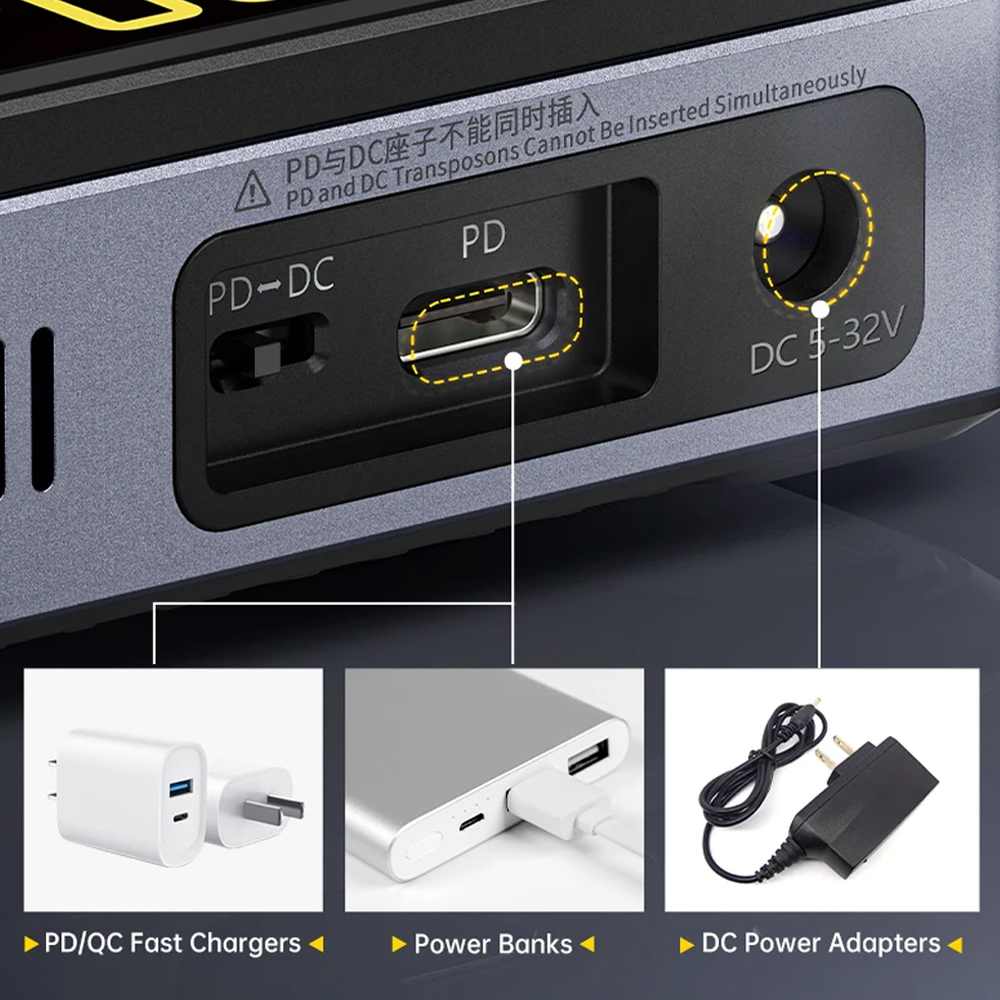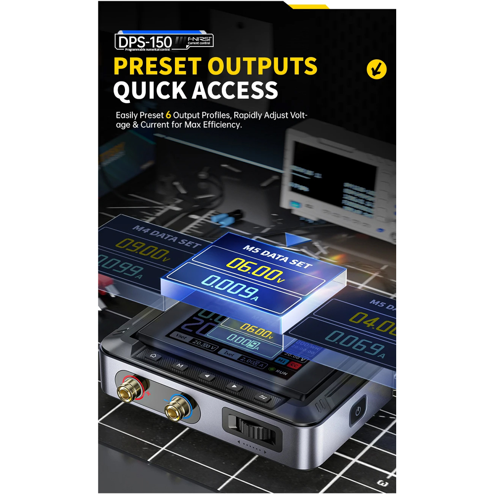 | Fitur Canggih dan Preset Programmable Dilengkapi dengan dukungan input PC, QC, dan DC, power supply ini menawarkan fleksibilitas tinggi dalam berbagai skenario penggunaan. Tersedia 6 preset tegangan dan arus yang dapat diprogram, memungkinkan Anda beralih pengaturan dengan cepat tanpa perlu set ulang dari awal, sehingga lebih efisien dan hemat waktu saat bekerja. |