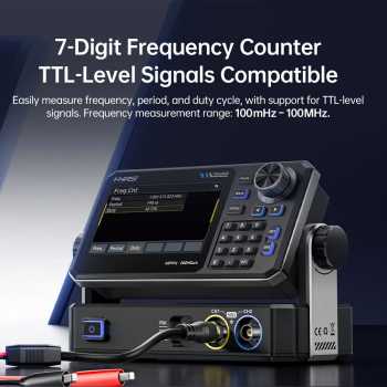 | Frequency Counter Terintegrasi Alat ini juga berfungsi sebagai frequency counter dengan akurasi tinggi. Mampu mengukur frekuensi hingga 100 MHz dengan presisi tinggi. Ini mengurangi kebutuhan alat tambahan dalam setup laboratorium. |