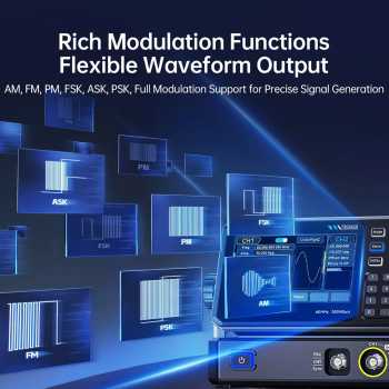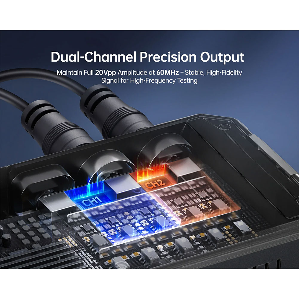 | Dual Channel Output Presisi Tinggi Generator ini memiliki dua channel output yang dapat digunakan secara bersamaan untuk menghasilkan sinyal berbeda atau sinkron. Hal ini memungkinkan pengujian rangkaian kompleks dengan lebih efisien tanpa perlu alat tambahan. Keunggulannya adalah fleksibilitas tinggi dalam simulasi dan pengujian sistem elektronik modern. |