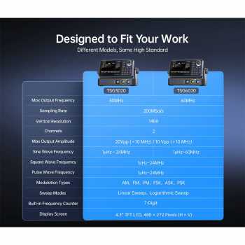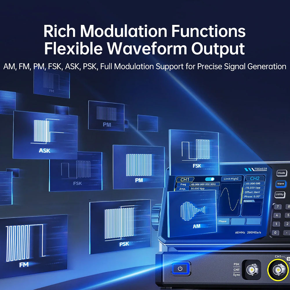 Butuh signal generator akurat dan fleksibel? FNIRSI TSG6020 & TSG3020 hadir dengan teknologi DDS, dual channel, dan sampling rate 200 MSa/s untuk menghasilkan sinyal presisi tinggi. Dilengkapi layar touchscreen 4.3 inch, mendukung berbagai waveform, modulasi lengkap, serta fitur sweep dan frequency counter, ideal untuk teknisi, engineer, hingga kebutuhan lab elektronik.