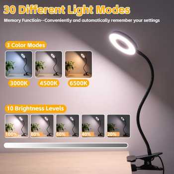 | Leher Fleksibel 360° Dilengkapi gooseneck fleksibel 360° yang mudah ditekuk untuk mengatur arah cahaya sesuai kebutuhan. Clamp metal kuat dapat membuka hingga 2.36 inch sehingga cocok untuk berbagai ketebalan meja atau headboard. Bagian penjepit dilengkapi pelindung sehingga tidak merusak atau menggores permukaan meja. |