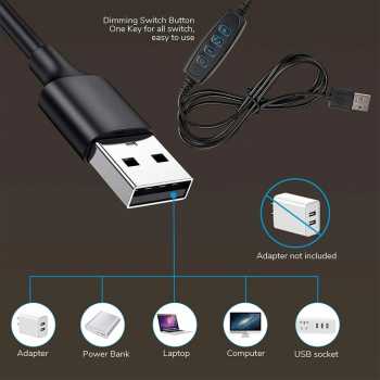| USB Powered Praktis Lampu menggunakan sumber daya USB 5 V sehingga bisa digunakan dengan laptop, power bank, USB socket, PC, maupun adaptor USB. Sangat fleksibel digunakan di kamar, kantor, bahkan saat bepergian atau camping ringan. Catatan penting: Gunakan adaptor 5 V / 2 A untuk menghindari kerusakan pada tombol kontrol dan LED. (Adaptor tidak termasuk dalam paket.) |