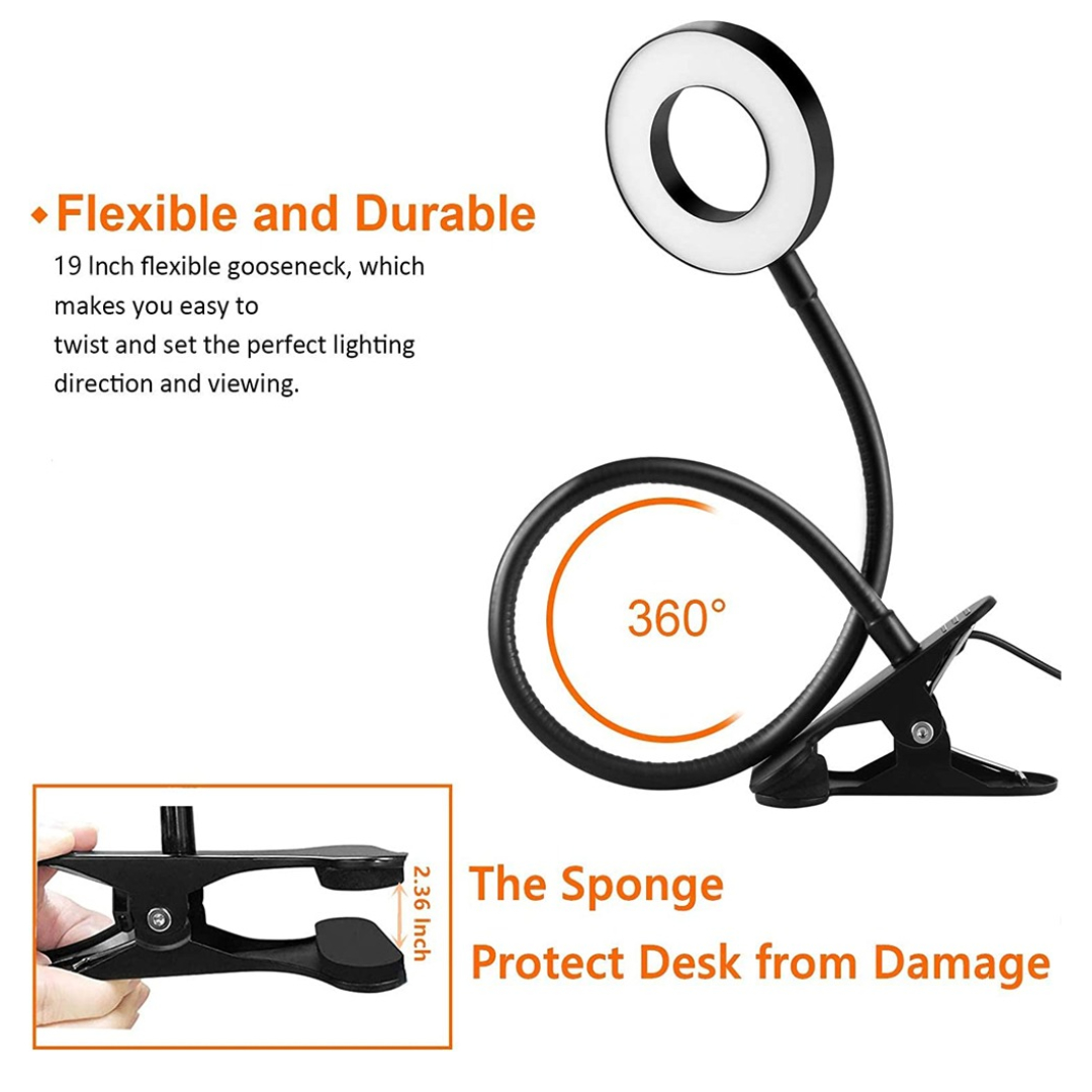 Lampu meja LED jepit dengan desain ring light modern dan fleksibel 360° ini dirancang untuk mendukung aktivitas belajar, kerja, membaca, hingga video conference. Menggunakan 48 LED premium dengan 3 temperatur warna serta 10 tingkat kecerahan per warnanya, lampu ini memberikan pencahayaan stabil tanpa flicker dan tanpa silau. Cukup colok ke USB dan langsung siap digunakan di mana saja.