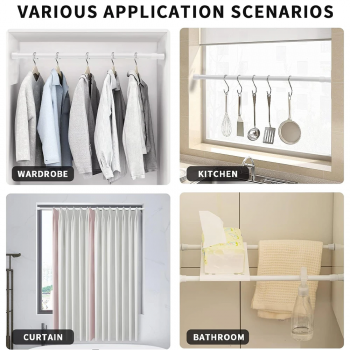 | Tanpa Bor dan Mudah Dipasang (No Drilling) Batang tirai ini menggunakan sistem pegas tekanan sehingga dapat dipasang tanpa bor, tanpa paku, dan tanpa alat tambahan. Cukup putar untuk menyesuaikan panjang, lalu tekan di antara dua dinding hingga terpasang kuat dan stabil. Aman digunakan tanpa merusak tembok, keramik, kaca, maupun permukaan halus lainnya. |