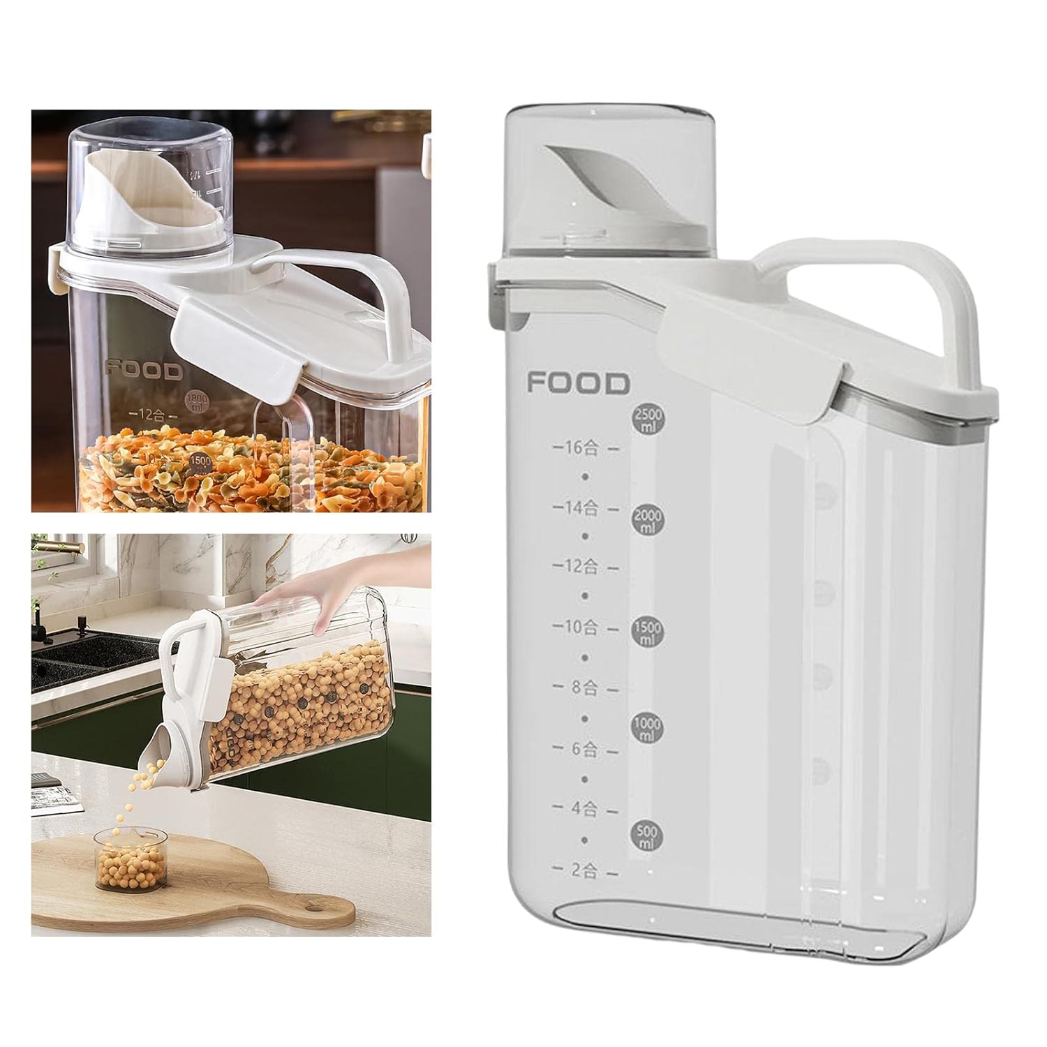 Kemasan makanan yang beragam di rumah membuat kesan berantakan. Rapikan penyimpanan makanan kering di rumah Anda dengan wadah dari FOOD. Dirancang dengan ukuran besar, wadah muat makanan dalam jumlah besar sehingga penyimpanan lebih efisien. Wadah didesain transparan dan elegan dengan bentuk yang memanfaatkan penyimpanan vertikal. Praktis digunakan dengan gagang yang mudah dipegang, serta mudah melihat sisa isi dalam wadah. Isi tidak gampang tumpah dengan pengaman clasp pada tutup toples dan tutup gelas ukur yang memiliki slot pengunci. Mulut wadah didesain seperti corong yang memudahkan penuangan cairan, serta tutup gelas ukur untuk menakar. Dibuat dari material plastik PP dan PS berkualitas yang mudah dibersihkan.