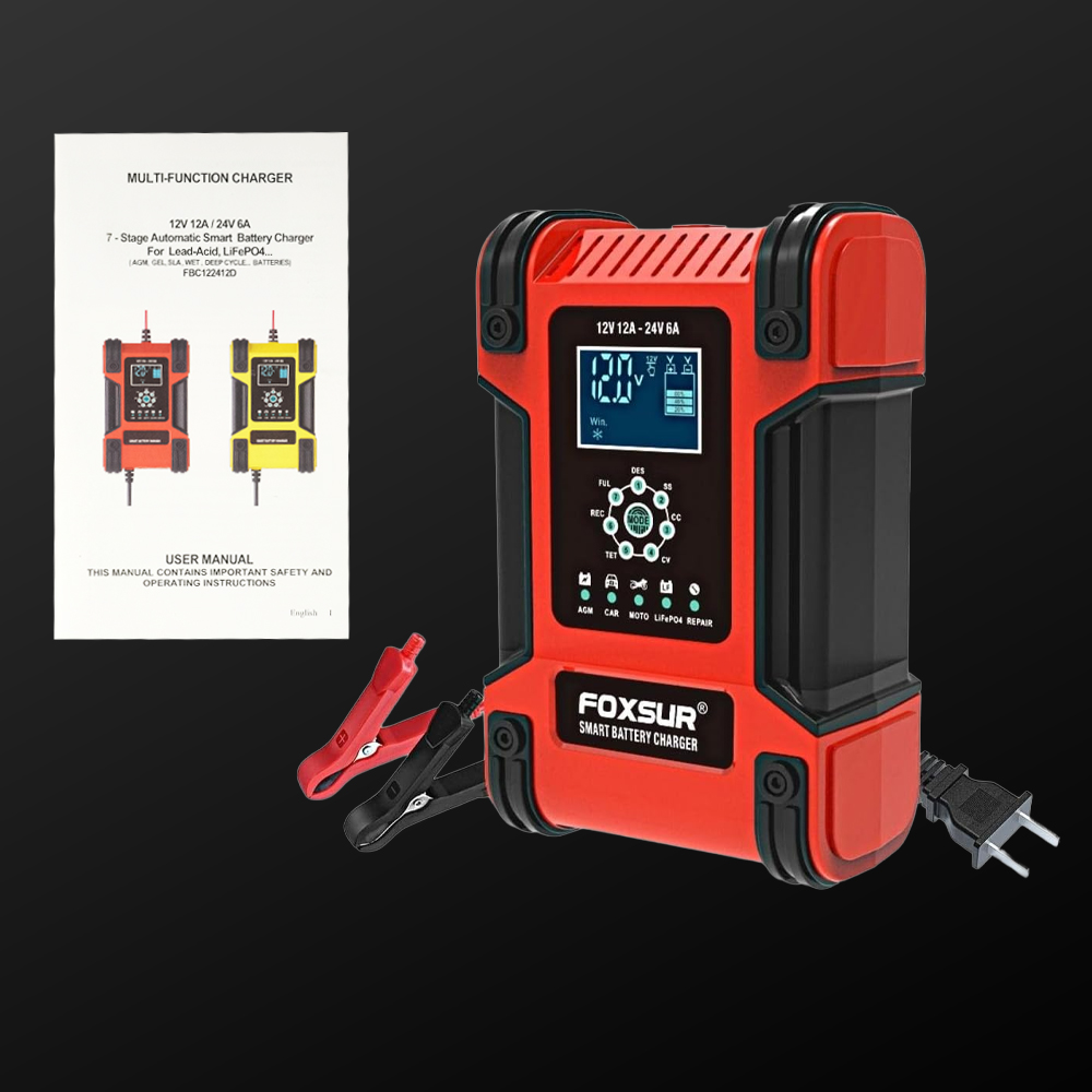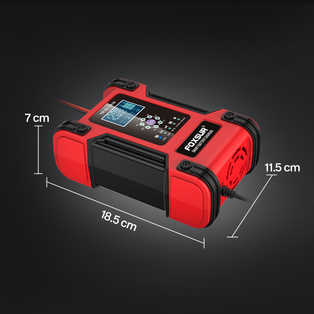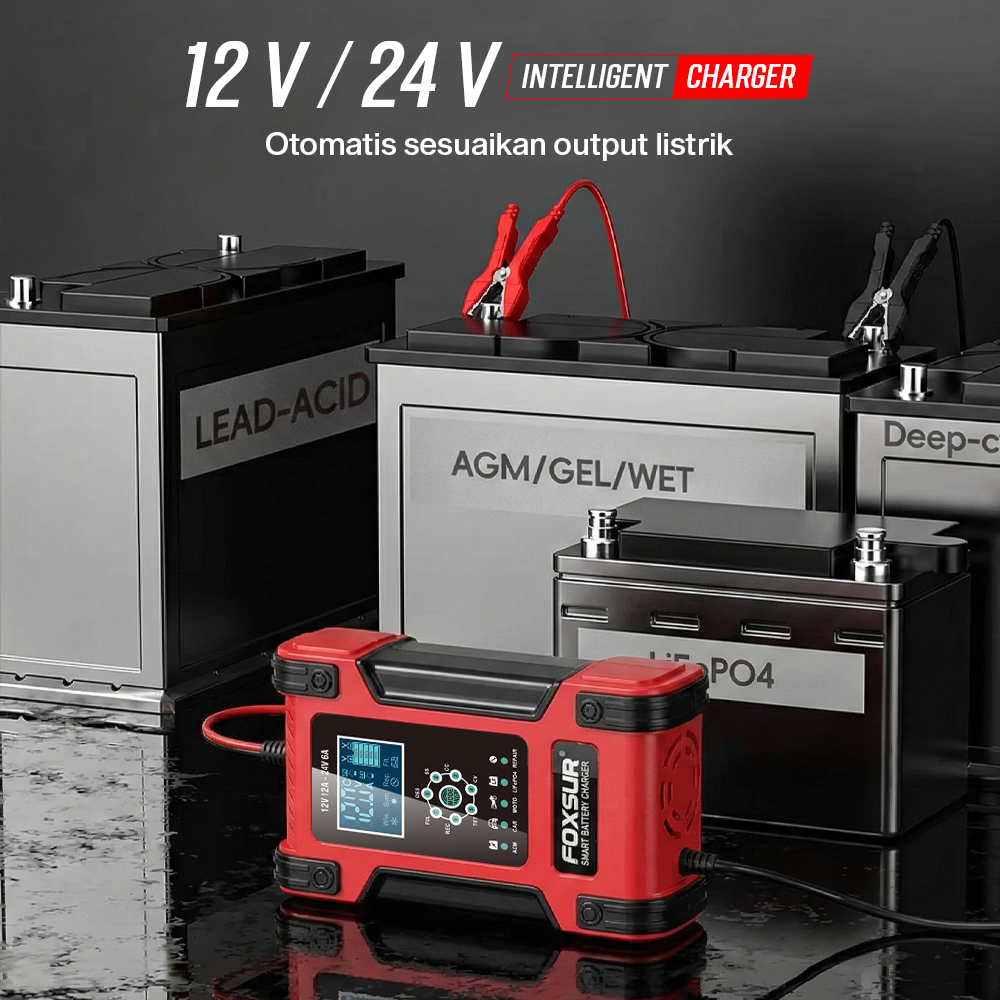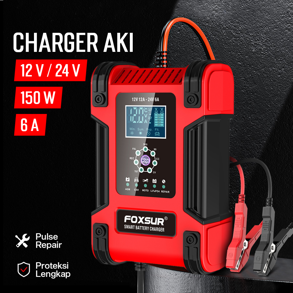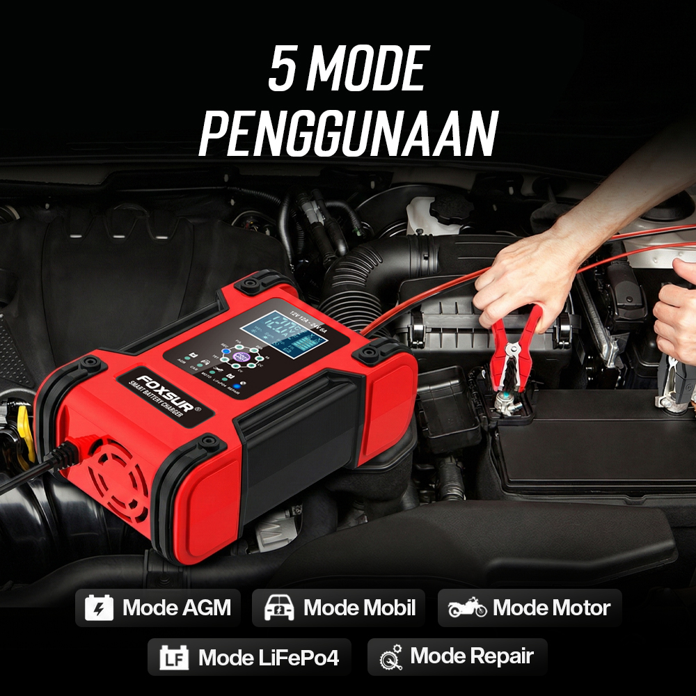 Bermasalah dengan aki yang sering drop? Kini Anda dapat mengisi daya aki kendaraan di rumah menggunakan charger aki FOXSUR. Dibuat untuk aneka jenis kendaraan, charger aki ini cocok untuk kendaraan dengan sistem kelistrikan 12 V dan 24 V. Model portable memudahkan Anda membawa charger aki. Lengkap dengan 4 mode penggunaan dan proteksi lengkap untuk memastikan tetap aman digunakan.