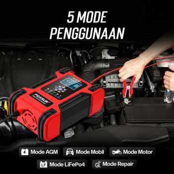 | Otomatis Sesuaikan Output Dibekali dengan fitur intellegent charger, charger aki otomatis menyesuaikan output 12 V atau 24 V listrik sesuai jenis kendaraan. Output juga akan diturunkan saat baterai terisi penuh untuk cegah overcharge. |