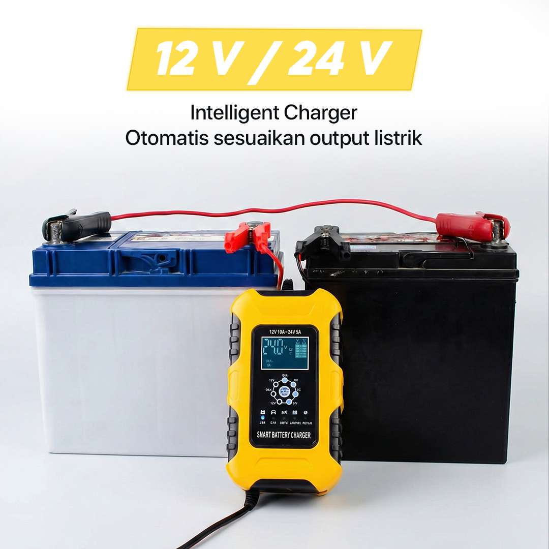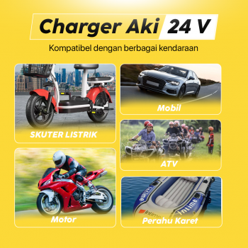 | Otomatis Sesuaikan Output Dbekali dengan fitur intellegent charger, charger aki otomatis menyesuaikan output listrik sesuai jenis kendaraan. Output juga akan diturunkan saat baterai terisi penuh untuk cegah overcharge. |