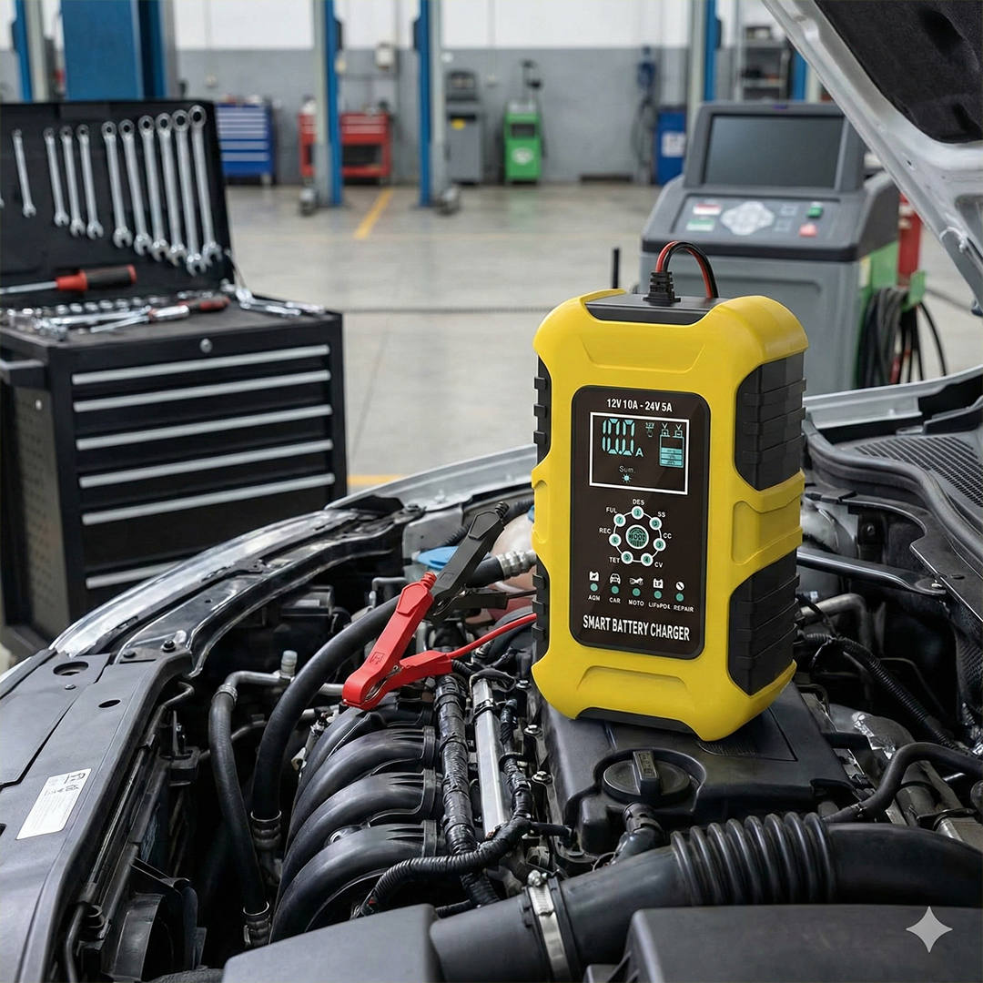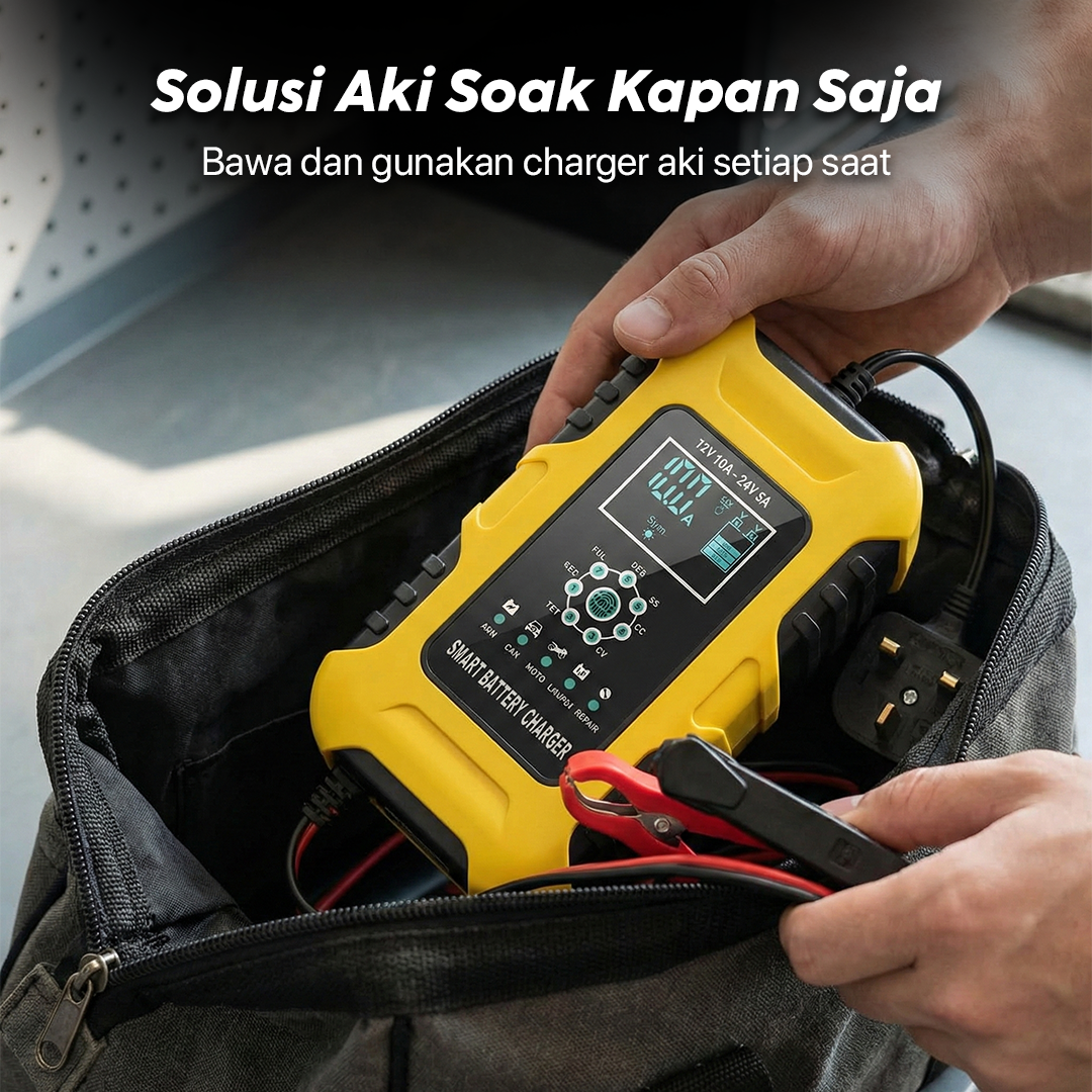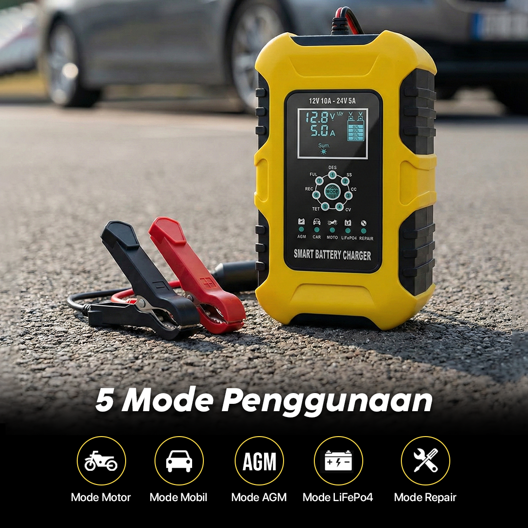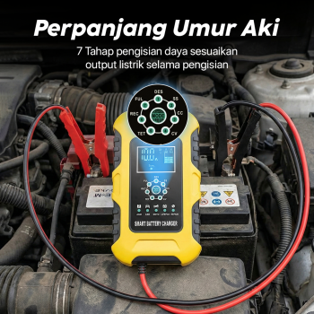| Perpanjang Umur Aki 7 Tahap pengisian sesuaikan output arus listrik selama pengisian untuk cegah kerusakan pada kendaraan. Efektif cegah overheat dan perpanjang umur aki. |
