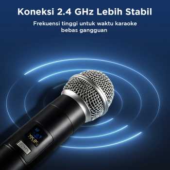 | Koneksi 2.4 GHz Lebih Stabil Koneksi 2.4 GHz menggunakan sinyal dengan frekuensi 50 Hz - 15 KHz yang lebih stabil dan tidak mudah terganggu oleh sinyal wireless lainnya. Kini Anda bisa bernyanyi dengan nyaman tanpa terganggu sinyal yang lemah atau terputus. |