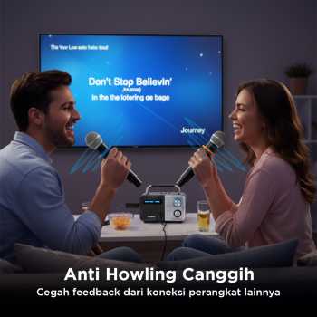 | Anti Howling Canggih Fitur anti howling canggih lindungi dari koneksi perangkat lain dan cegah feedback suara yang mengganggu. Cocok untuk ruang ramai dan tertutup tanpa gangguan. |