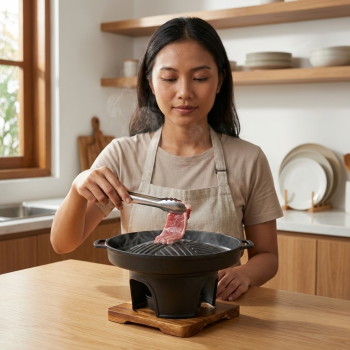 | Hidangan Matang Merata Model ringkas dengan tangki arang dengan 3 burner di bagian bawah membuat alat panggang arang ini dapat menghasilkan suhu tinggi dan stabil. Inilah yang membuat aneka hidangan dapat matang merata. |