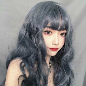 FYNHA Wig Rambut Palsu Panjang Bergelombang Wavy Hair Full Bangs 65cm - HB-004 - Dark Gray