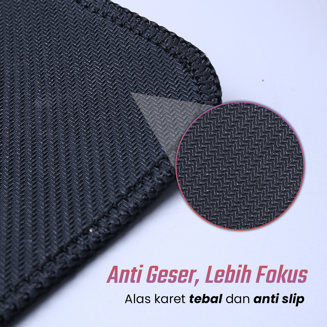 | Anti Geser, Lebih Fokus Alas dengan lapisan karet anti slip berfungsi untuk menahan mouse pad agar tidak bergeser saat digunakan. Bahan karet yang digunakan punya daya rekat kuat sehingga dapat menjaga posisi mouse meski digunakan untuk bermain game intens sekalipun. |