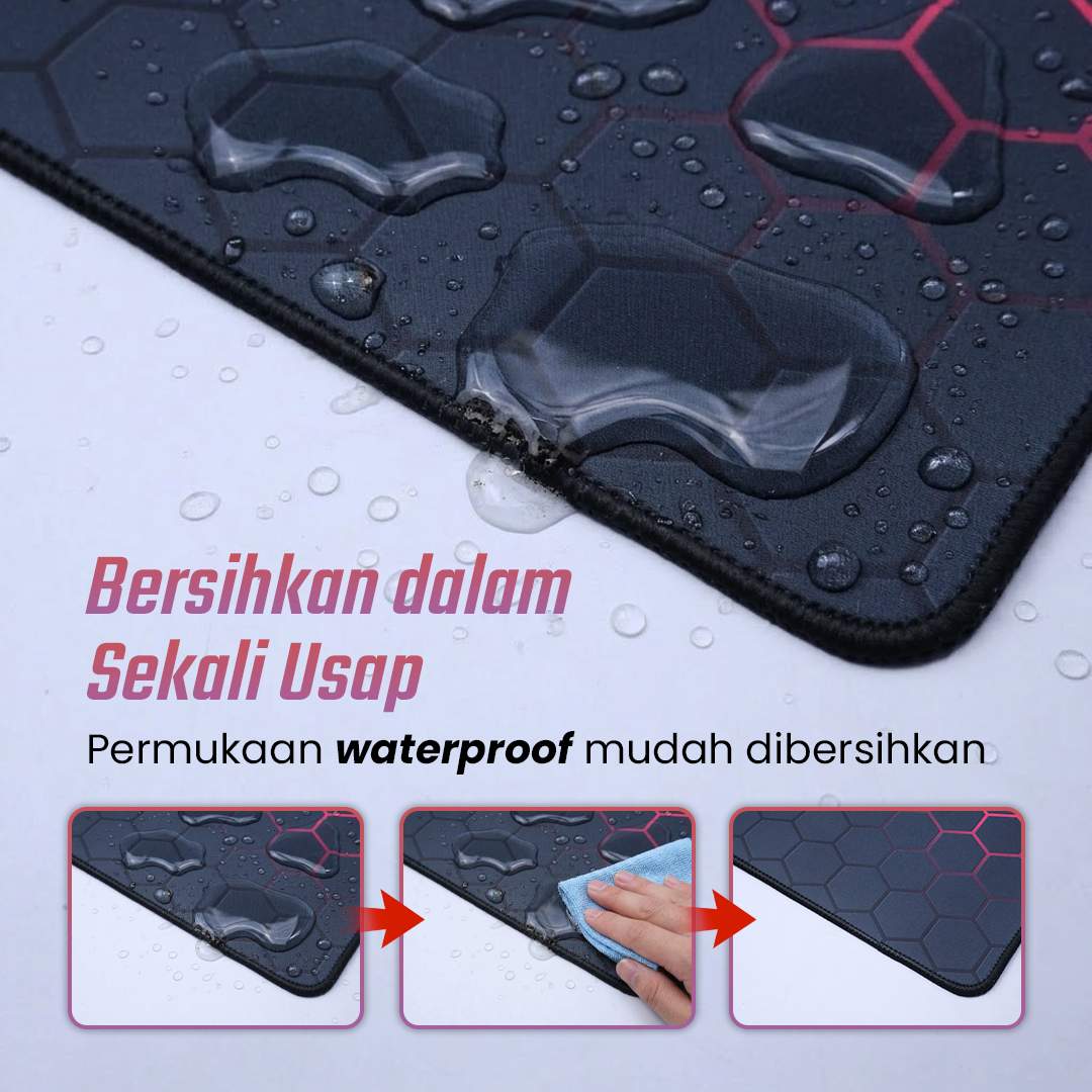 | Bersihkan dalam Sekali Usap Permukaan waterproof yang membuat mouse pad mudah dibersihkan saat terkena percikan air. Cukup gunakan kain untuk membersihkan air di permukaan produk ini. |