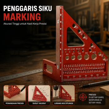 Tingkatkan presisi dan efisiensi dalam setiap proyek pertukangan dengan penggaris siku multifungsi. Dirancang untuk kebutuhan pengukuran dan penandaan dari berbagai sudut, penggaris ini merupakan alat serbaguna yang wajib dimiliki oleh para profesional hingga penghobi DIY. Dengan desain 3D inovatif dan fitur lubang marking presisi, hasil kerja Anda akan jauh lebih rapi dan akurat.