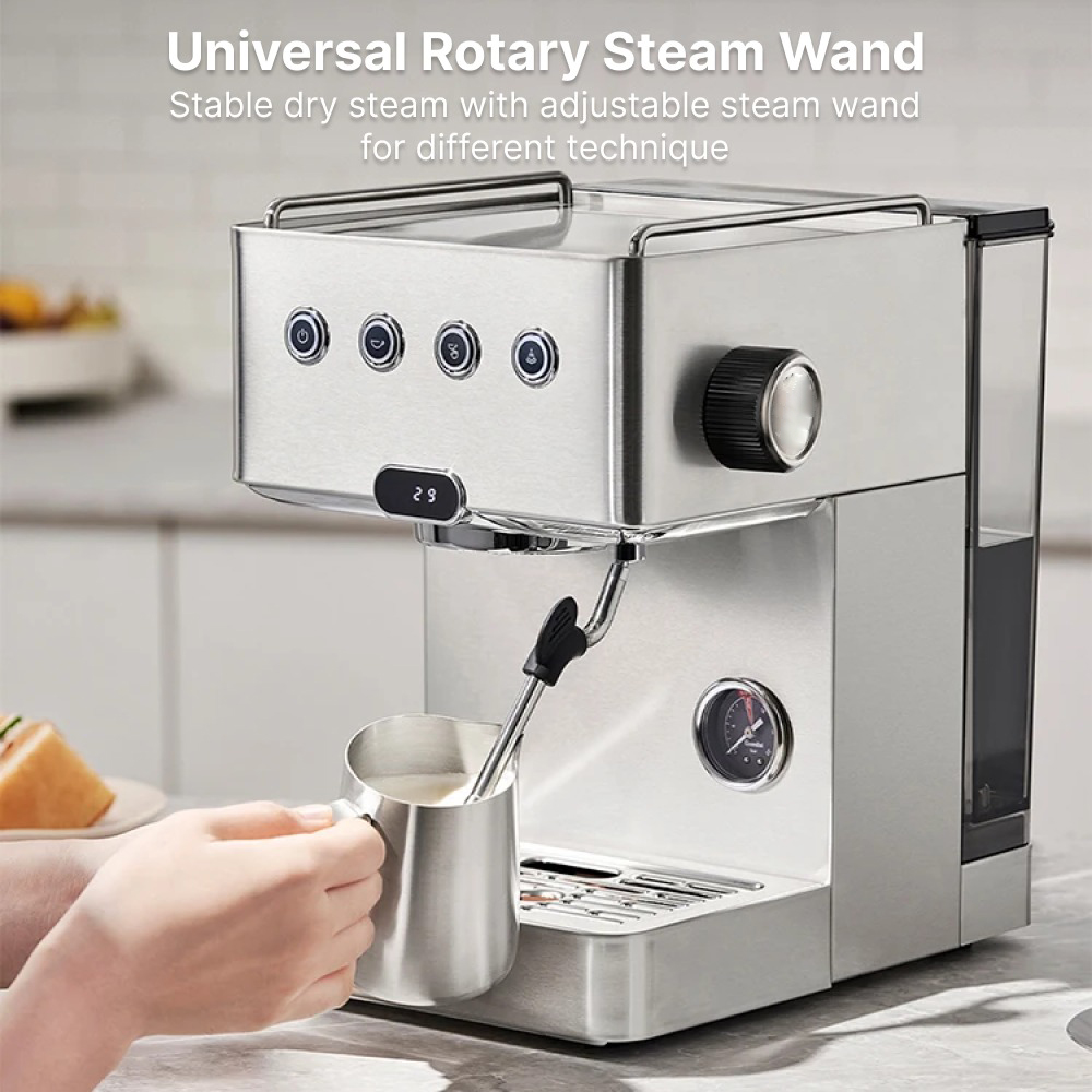 | Dilengkapi Steam Wand Mesin ini dilengkapi steam wand yang memungkinkan Anda membuat milk foam lembut untuk berbagai kreasi kopi seperti cappuccino dan latte. Sangat cocok untuk Anda yang ingin memperluas variasi minuman kopi di rumah. Tekstur buih yang halus membuat tampilan dan rasa kopi semakin profesional. |